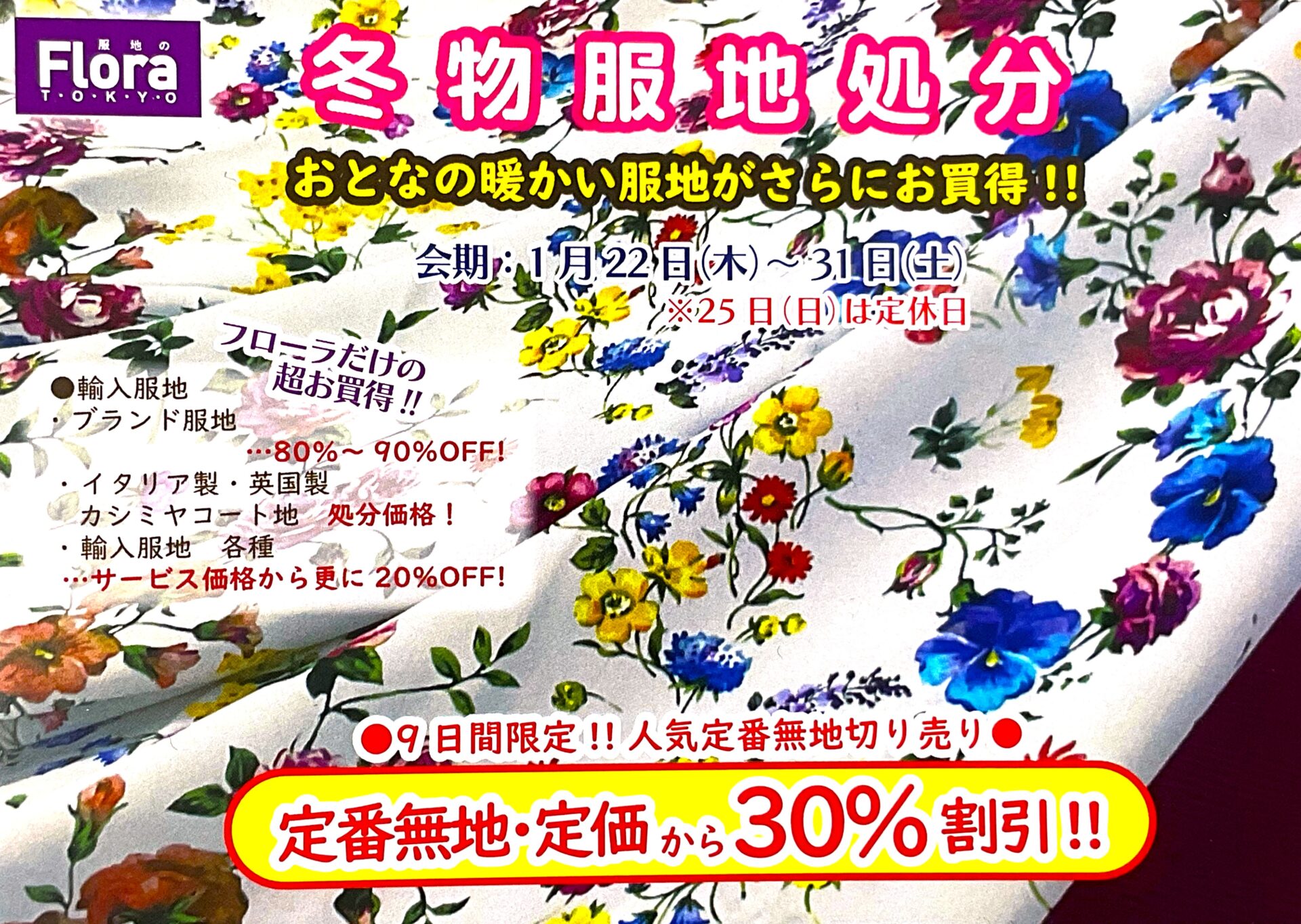 定番無地切売り全品定価から30%割引