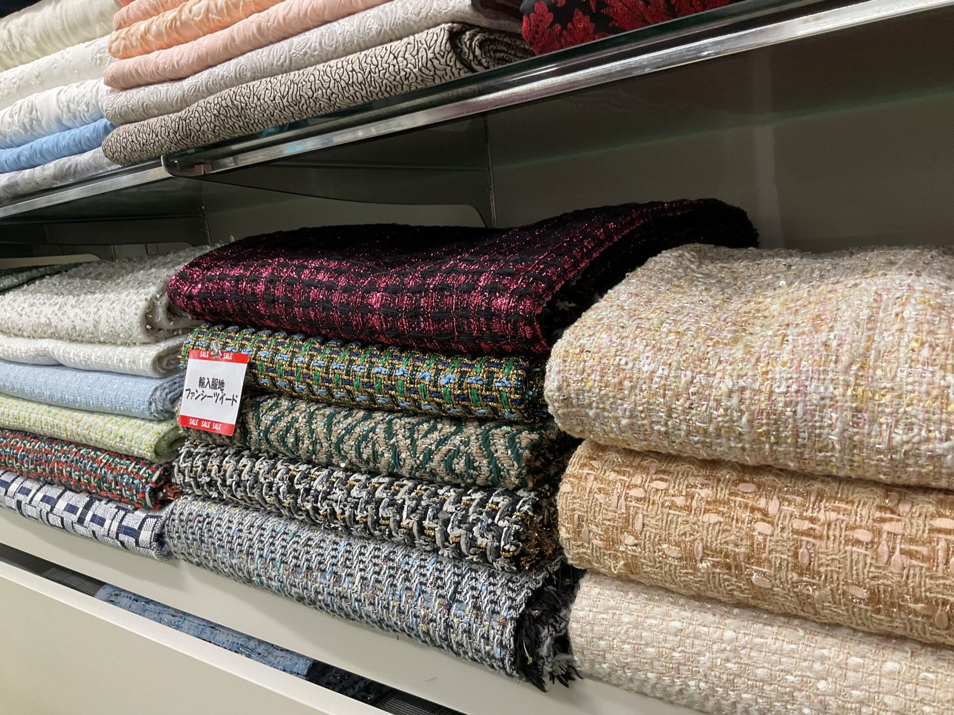 会期:2月19日(木)~28日(土) ※22日(日)は定休日、23日(祝)は営業いたします。 昨シーズン持越し春夏服地をフローラだけの特別価格でご提供‼ ワンピース、パンツ着分2,000円(税別) 春物ニット パンツ、ジャケット向けポリエステルストレッチ 麻先染め無地、チェック、綿ニットプリント 国産レース各種着分5,000円(税別)~28,000円(税別) イタリア製、フランス製輸入服地特別価格でご提供 輸入ファンシィツイード特別価格でご提供 輸入エンブロイダリーレース各種特別価格でご提供